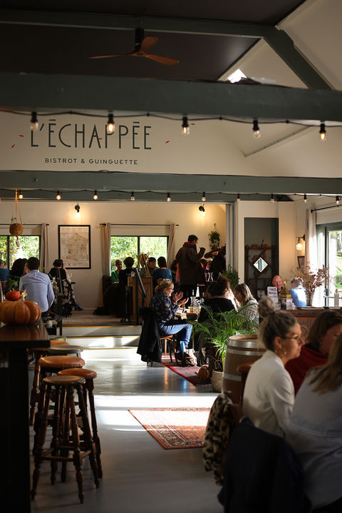 Chaque saison, le bistrot vous permet de vous attabler à l'intérieur près du feu ou sous le soleil de la terrasse de L'Échappée.